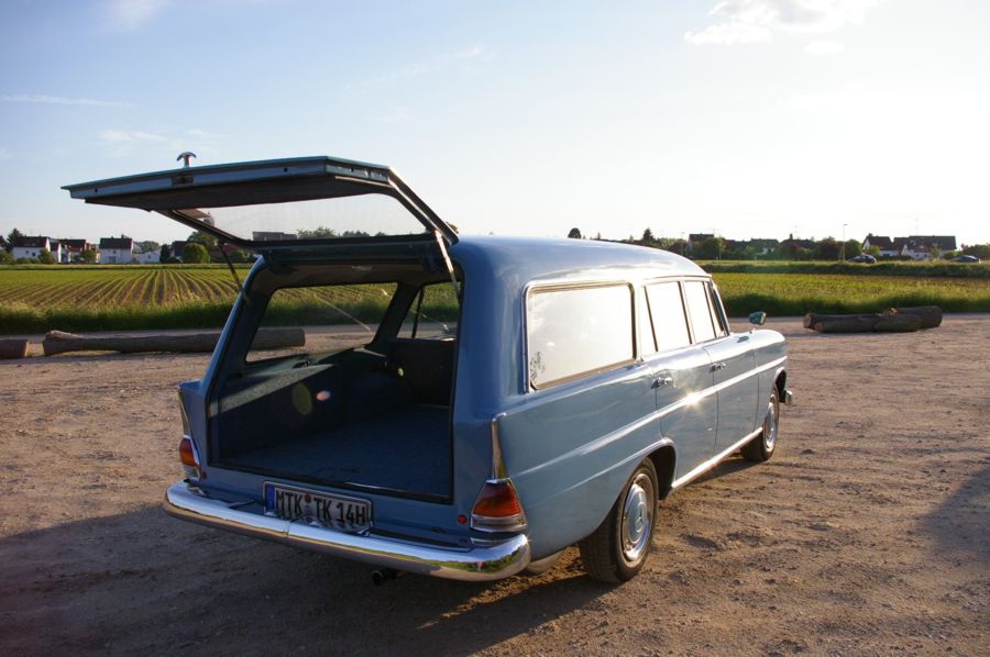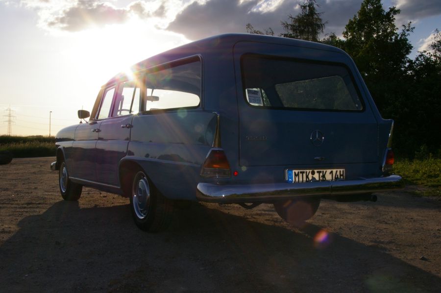 Die Geschichte eines ungewöhnlichen Autos: Gemäß der Datenkarte vom 11.01.1962 wurde der Wagen als Limousine ausgeliefert. Interessanterweise sind auf der Datenkarte die wenig gewünschten Extras „Trennwand (Taxi) mit Schiebfenster oder versenkbarer Glasscheibe“ und „Bedienungsanleitung und Wartungsheft deutsch“ vermerkt. Nach der Aussage des Vorbesitzers, ein so genannter „Hobbyhändler“, wurde der Wagen an einen Automatenfabrikanten in der Schweiz ausgeliefert. Dieser ließ die Limousine bei einem kleinen Karosseriebauer in der Nähe von St. Gallen zum Kombi umbauen. Es ist nicht unwahrscheinlich, dass dieses Fahrzeug das einzig überlebende seiner Art ist. Optisch orientiert sich der Kombiumbau stark an den Umbauten des deutschen Sonderfahrzeugherstellers Binz. In einigen Details unterscheidet sich dieser Kombi jedoch von seinem deutschen Vorbild. Leider verliert sich die Spur des Fahrzeugs bis zum Jahr 2003. Dort wurde er im Juli 2003 in Sigmaringen für kurze Zeit zugelassen. Bald darauf muss das Fahrzeug an den „Hobbyhändler“ im Raum Koblenz weiterverkauft worden sein, der Anfang November 2003 Verkaufsanzeige in die „Oldtimer Markt“ setzte. Das Auto präsentierte sich äußerlich in überraschend gutem Zustand. Besonders der sensible Heckklappenbereich schien intakt, was bei Kleinserien-Kombis ein K.O.-Kriterium sein kann. Die vorderen Kotflügel wurden gegen die des 200ers mit integrierter Blinker-/Nebelleuchtenkombination getauscht. Im Innenraum war die original klappbare Rückbank glücklicherweise erhalten. Armaturenbrett und Verkleidungen waren dagegen teilweise beschädigt und unvollständig. Es fanden sich Reste einer Alarm- und Funkanlagenverkabelung. Die Überführung erfolgte auf eigener Achse. In der Folgezeit wurde der Kombi nach und nach in den jetzigen Zustand versetzt: Technik Karosserie Innenraum Als nächstes ist die Nachrüstung einer Servolenkung in Planung. |